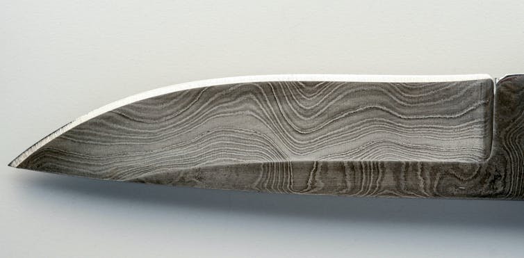 Mirando la intimidad del acero de Damasco descubrimos que al forjarse se creaba una jerarquía de microestructuras en la que las capas dúctiles (que pueden deformarse fácilmente) se alternan con capas duras (más frágiles), lo que daba lugar a propiedades mecánicas muy superiores a las de otros aceros.