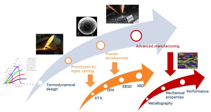 IMDEA Materials has recognized expertise on the design of alloys for high temperature, high strength and lightweight applications, which are suitable for the production of 3D printed components by laser-based or binder-jetting methods.